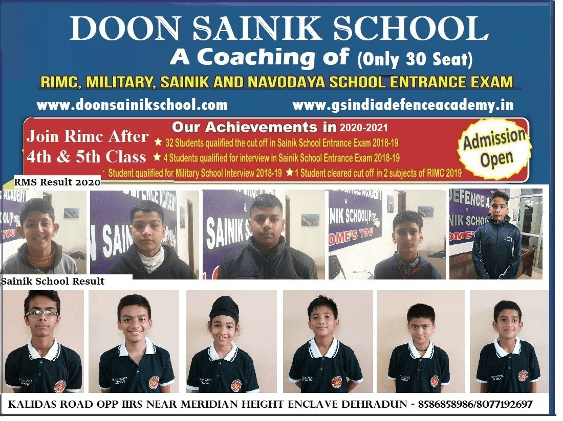 Doon Sainik School provides a high-quality balanced and self-designed educational program for admission to DSS. High academic achievement is our priority. The objective of the Sainik Schools is to prepare the students to lead as officers in the Defence Services of the country. The schools select smart and promising students through a national entrance examination and mold their personality in order for them to become leaders of the Nation. Doon Sainik School aims at providing quality education through optimizing intellectual and infrastructural resources, capacity building, practicing ethical and transparent management principles, and adhering to the core value system.